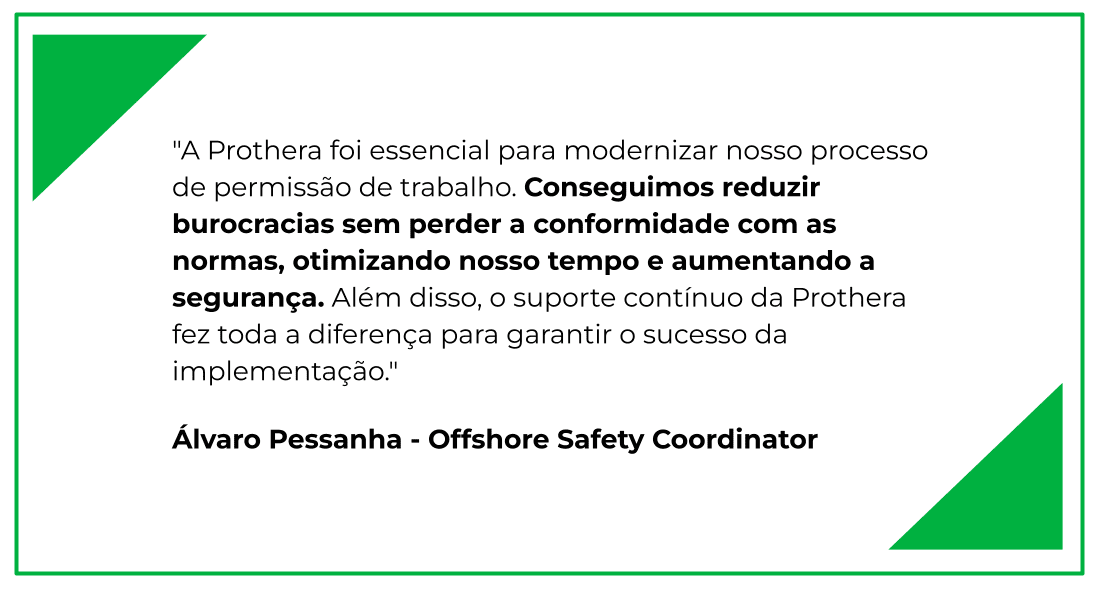 A nova sistemática digital com a Prothera, agilizou o processo de liberação de trabalho, garantindo mais eficiência e segurança.